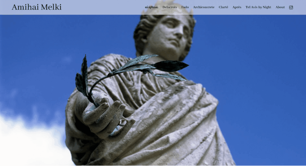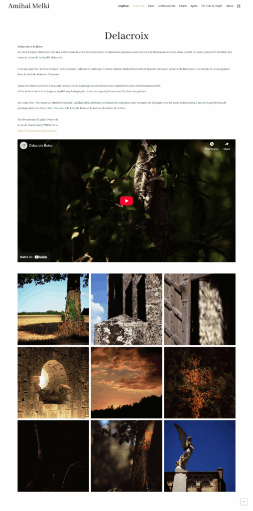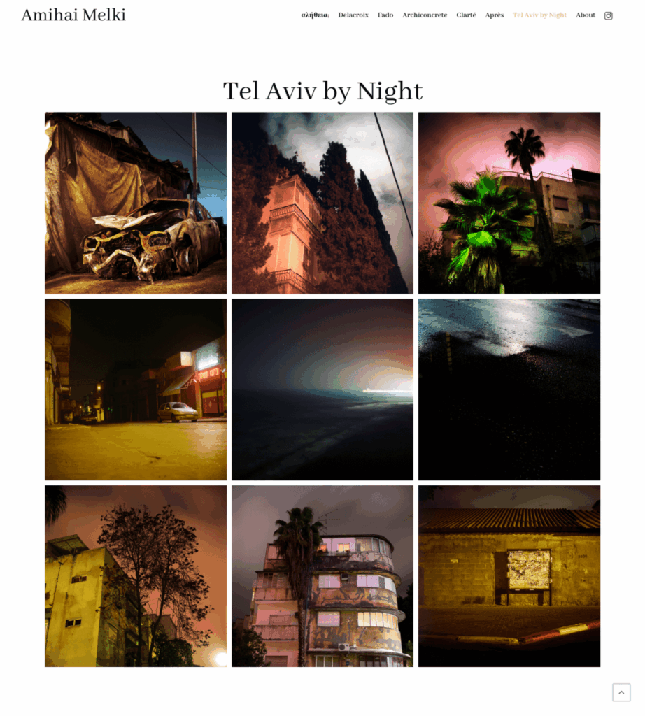 His website serves as a clean portfolio of his main photographic series along with a concise “About” page that highlights his education in Paris and Tel Aviv and his exhibition history.